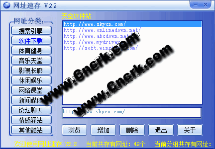網(wǎng)址速存 能夠自動(dòng)調(diào)用IE瀏覽器,打開指定網(wǎng)址的網(wǎng)頁(yè) 具有記憶功能,按點(diǎn)擊率由高到低進(jìn)行排