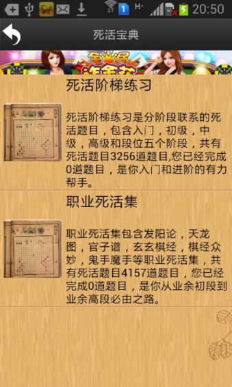 3.死活寶典:死活寶典是圍棋教育的扛鼎之作,當前最強大的死活庫。收錄了7000+道死活題。從入門級到專業(yè)級,從古代死活經(jīng)典到現(xiàn)代職業(yè)高手死活題。包括發(fā)陽論,天龍圖,官子譜,玄玄棋經(jīng),棋經(jīng)眾妙和鬼手魔手等專業(yè)死活集。是您提高圍棋棋力的良師益友,是你從業(yè)余10級到業(yè)余5段的必由之路。