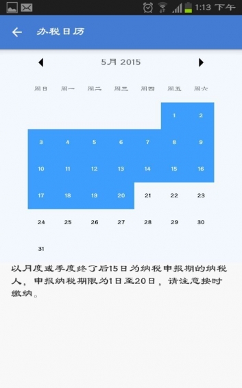 (五)辦稅日歷:查看辦稅日歷,避免錯誤申報期。