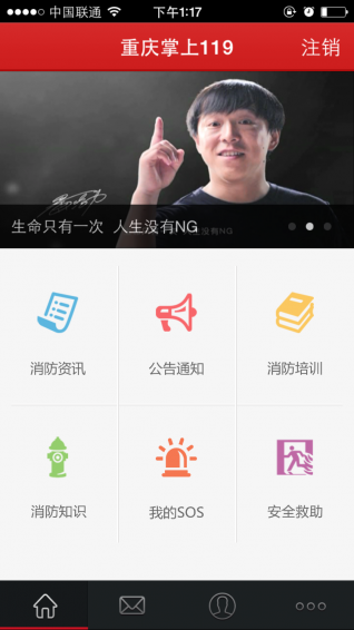 《重慶掌上119》手機(jī)客戶(hù)端除消防資訊、消防學(xué)堂、公告通知等基礎(chǔ)信息類(lèi)板塊外,還設(shè)有“消防隱患快拍”、“一鍵逃生”和“我的SOS”等功能板塊。安裝這一軟件的手機(jī),使用者可以隨時(shí)向消防部門(mén)上傳火災(zāi)隱患現(xiàn)場(chǎng)信息,并在遇到緊急情況時(shí),獲得逃生路線導(dǎo)航及一鍵求援。