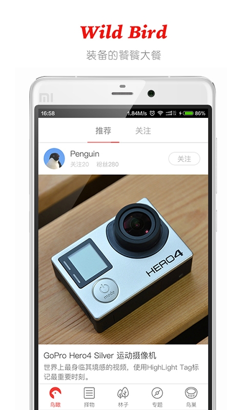 野鳥(niǎo)裝備是一款出色的手機(jī)戶外運(yùn)動(dòng)裝備購(gòu)物軟件,這款軟件集結(jié)了全球最潮、最酷、最安全、最專(zhuān)業(yè)的戶外設(shè)備裝備,讓更多的戶外運(yùn)動(dòng)者能夠以最佳的狀態(tài)參與一個(gè)又一個(gè)的戶外驚險(xiǎn)運(yùn)動(dòng),享受非一般的運(yùn)動(dòng)體驗(yàn)。