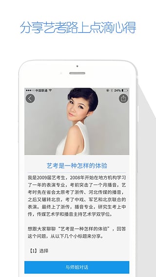 有問題隨時(shí)提問,各式的藝考學(xué)習(xí)資料:文藝常識、寫作技巧、自備稿件、聲臺形表、攝影技巧、小三門、樂理題等幫你掃清藝考的障礙!