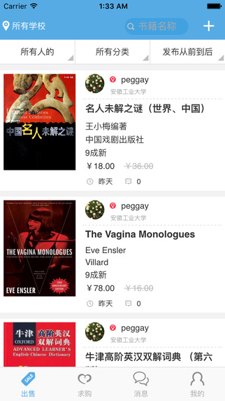 通過即時聊天功能,讓用戶可以快速聯(lián)系出售或求購的同學(xué),實現(xiàn)線上聯(lián)系、線下交易,以書會友;