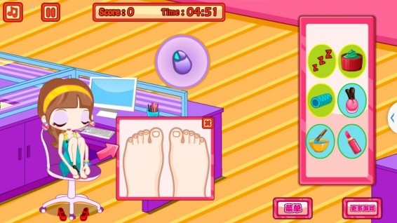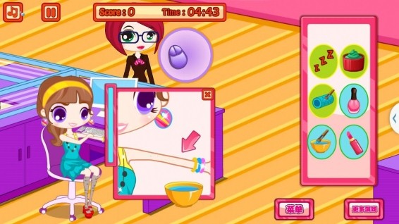 辦公室化妝!您絕對沒有見過的休閑惡搞游戲!當(dāng)愛美的美麗小姐遭遇晚起和堵車會有怎樣的情景呢?妝還沒有化,只好趁上班時間偷偷化妝了,可是老板就在辦公室里坐著。腫么辦?來吧小朋友們讓我們幫美麗小姐敷面膜、涂指甲油、擦口紅、整理發(fā)型等,真是一次眼皮下的冒險又搞笑的體驗!
