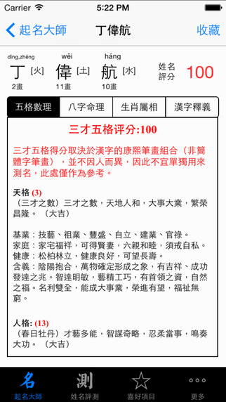 3.提供五格三才筆畫評測,可與各種軟件網(wǎng)站進(jìn)行比對