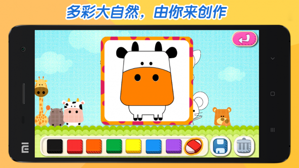 游戲針對(duì)嬰幼兒設(shè)計(jì),符合其對(duì)繪畫的基本需求。熊孩子愛涂鴉突破傳統(tǒng)涂鴉應(yīng)用的束縛,不僅包含傳統(tǒng)的涂鴉模式,并且針對(duì)孩子的正常認(rèn)知精心設(shè)計(jì)了藝術(shù)填色部分,針對(duì)孩子所喜聞樂見的一些事物進(jìn)行創(chuàng)造性的藝術(shù)填色,同時(shí)還可以對(duì)孩子的作品進(jìn)行保存讓我們共同為孩子留下童年美好的記憶。后續(xù)我們更規(guī)劃多種多樣的填色更新——花鳥魚蟲,天文地理,讓孩子在歡樂的涂鴉中學(xué)到更多的知識(shí)。【游戲特點(diǎn)】