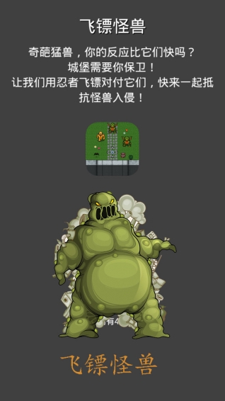 《消滅小怪獸》是一款塔防類游戲。奇葩猛獸入侵,襲擊你的城堡,你的反應(yīng)比它們快嗎?城堡被滅,還你的滅了怪獸? 讓我們用忍者飛鏢對(duì)付它們,快來(lái)一起抵抗怪獸入侵?成敗就在你手。