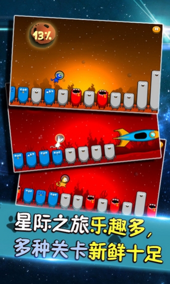 《跳躍貓》在旅途中撞破了飛船,水晶飄灑到各個(gè)星球上,為了撿回能源,它開始了它的歷險(xiǎn)記。該游戲是由分享時(shí)代發(fā)行的節(jié)奏類精品游戲,難易結(jié)合的60關(guān),即滿足了喜歡挑戰(zhàn)的玩家的同時(shí)也吸引了娛樂休閑的玩家。全新的卡通角色結(jié)合每一關(guān)不同的畫面風(fēng)格,讓玩家更能享受極致的視覺體驗(yàn),玩家可根據(jù)自己的喜好從10余個(gè)不同的卡通角色中選出自己最愛的一款來挑戰(zhàn)游戲,同時(shí)也有無盡模式來供大家玩耍,無盡模式隨時(shí)更新,玩家每次鎖定模式,均是一次全新的挑戰(zhàn)、觀感,玩的也更為酣暢淋漓!還等什么?快來下載吧!