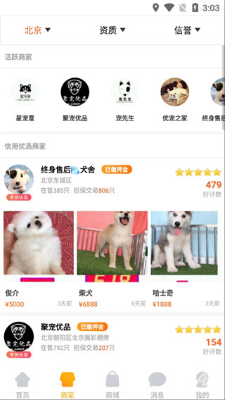 2、能夠在眾多商家里挑選自己心儀的寵物。