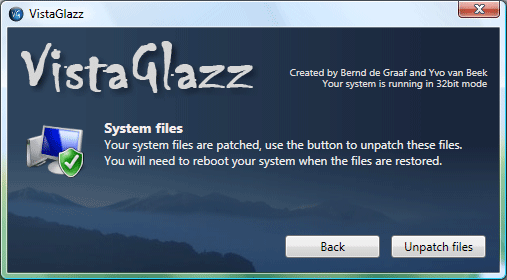 VistaGlazz 是一個(gè)用來(lái)修補(bǔ)Windows Vista系統(tǒng)文件的小型程序,它可以讓你使用第三方的風(fēng)格和主題,它同樣包括Aero透明風(fēng)格,在32/64位系統(tǒng)下均有效