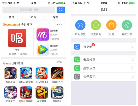 1、進(jìn)入軟件后首先看到的是推薦頁(yè)面,在這個(gè)頁(yè)面中為大家推薦了精選的游戲和軟件,還有最新的游戲和軟件,對(duì)于ios9用戶(hù)還有必讀的注意事項(xiàng)喲。