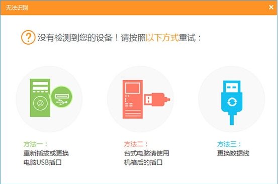 1、請確認你的機器是否已連接到電腦,可以嘗試再次拔插一下手機與電腦的USB連接線。