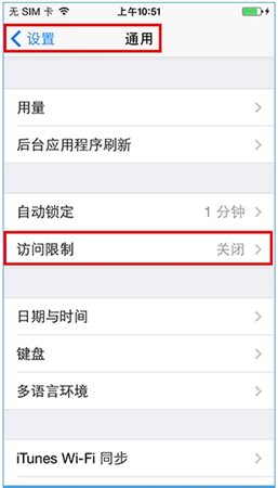 (關(guān)閉方法: 點擊“設(shè)置”功能,之后找到“通用”選項,點擊,找到“訪問限制”)