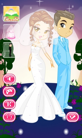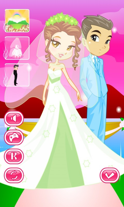 酷酷新娘換裝沙龍是一個(gè)換裝類游戲。點(diǎn)擊衣服圖標(biāo)的按鈕可以直接切換衣服,其他的按鈕可以切換其他的道具;“R”代表重置,讓裝扮回到開始的樣子;旋轉(zhuǎn)的箭頭是“隨機(jī)”,按了之后角色隨機(jī)穿一套衣服和飾品;“勾勾”是展示你打扮好的角色,按下之后會(huì)隱藏掉其他的按鈕;喇叭按鈕可以關(guān)掉音樂。 婚禮的鐘聲響了!儀式即將開始!唯一剩下的就是選擇一個(gè)耀眼的童話般的裙子!但她似乎無法決定。那你還等什么?去幫助她!