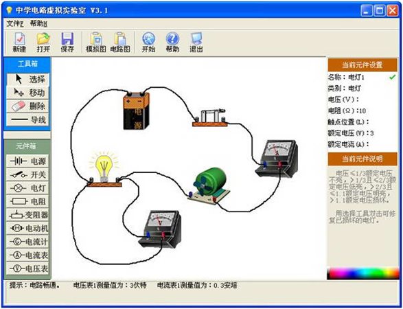 電路虛擬實(shí)驗(yàn)室為免安裝綠色軟件,無插件,雙擊即可運(yùn)行。為中學(xué)電路實(shí)驗(yàn)的仿真模擬軟件,能象真實(shí)實(shí)驗(yàn)一樣隨意連接試驗(yàn)元件和導(dǎo)線,還可畫標(biāo)準(zhǔn)電路圖,是中學(xué)電路教學(xué)與學(xué)習(xí)的輔助工具,能增強(qiáng)中學(xué)生學(xué)習(xí)興趣和效率,讓中學(xué)生在實(shí)驗(yàn)中輕松學(xué)好電路知識,本軟件還可用于幼兒啟蒙教育或作益智游戲。