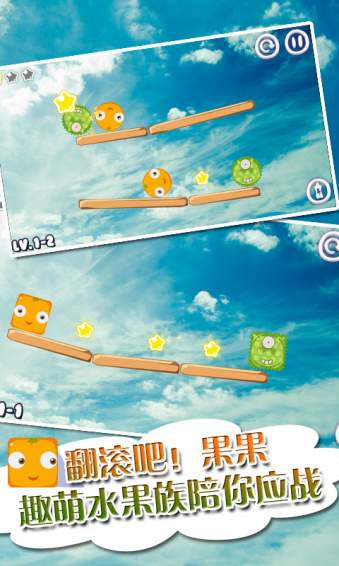 一款精品物理益智游戲,玩法易懂,操作簡單,過程輕松,少有受挫感,非常適合喜歡輕松游戲的玩家。您只需以手指輕觸水果,讓水果們?cè)凇胺健焙汀皥A”間轉(zhuǎn)換,以控制它們滾或不滾,通過它們滾動(dòng)的力量將蟲子趕下平臺(tái),并且最后自身還能安然停留就能過關(guān)!是不是很簡單呢?不過,也不要太小瞧它了哦,在趕走蟲子的路上會(huì)遇到一些星星,可是需要花費(fèi)一些小腦筋才能把它們?nèi)慷汲缘裟亍H峭P(guān)也不是那么容易的!