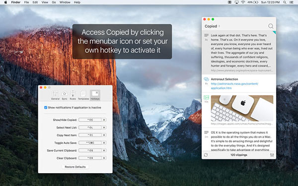 Copied Mac版是一款MacOS平臺(tái)上的剪切板工具,Copied的設(shè)計(jì)緊隨ElCapitan風(fēng)格,提供了黑白兩色主題。