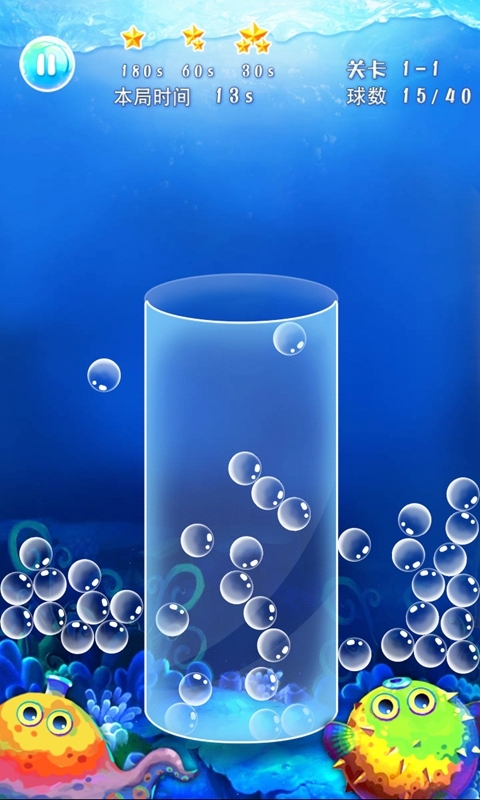 還記得童年時(shí)的游戲嗎?藍(lán)色的小管子蘸上晶瑩的肥皂水,小嘴靠近管子,輕輕一吹。哇!可愛(ài)的泡泡就從小管子里誕生啦!小泡泡在陽(yáng)光的照射下,呈現(xiàn)出晶瑩剔透的萌態(tài)。由童年游戲引發(fā)的靈感,這款小游戲誕生啦!你的目標(biāo)就是把小泡泡吹起來(lái),讓它們盡數(shù)掉進(jìn)瓶子里。游戲共有五大關(guān)卡;海底世界,魔法森林,冰雪奇緣,糖果屋和快樂(lè)圣誕。每個(gè)小關(guān)卡的瓶子形狀各異,也會(huì)有不同的障礙物,因?yàn)槲覀兊哪繕?biāo)和正你相反,就是阻礙你的泡泡掉到瓶子里,就看你能不能排除萬(wàn)難拿下所有關(guān)卡了!
