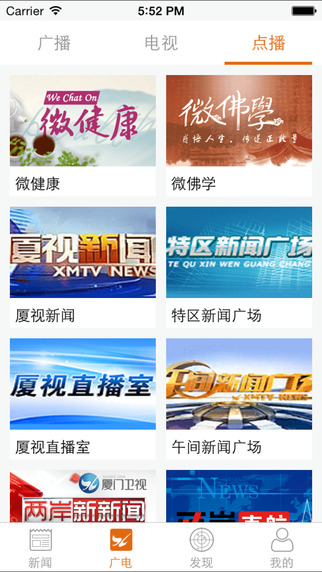 廣電:獨(dú)家的廈視節(jié)目,同步直播,隨時(shí)點(diǎn)播,任意回看。