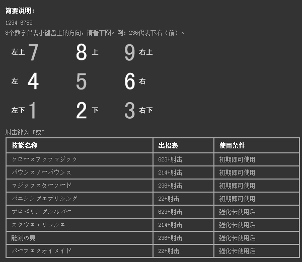 技能名稱 出招表 使用條件