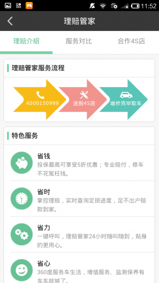4、理賠無(wú)憂:全國(guó)5000多家合作4S店為車車用戶開(kāi)辟綠色理賠通道,直接理賠,全程跟蹤服務(wù)