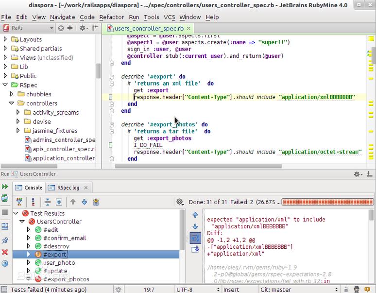 測試的價值永遠不能被低估。編寫代碼后,用該軟件對之進行單元測試的過程是機器可靠的,因為RubyMine的RSpec, Cucumber, Shoulda 和Test::Unit都極具靈活性且非常周密,此外,其編輯,運行和導(dǎo)航測試的UI都非常智能。