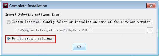 8、現(xiàn)在打開桌面上生成的JetBrains RubyMine 2018.1快捷方式,選擇do not import settings點擊ok;