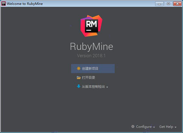 12、再次打開軟件,可以看到j(luò)etbrains rubymine 2018.1已經(jīng)是中文版本。