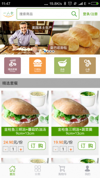 一人食是由河南一人食餐飲管理有限公司建立的專業(yè)進(jìn)口餐飲外賣服務(wù)平臺,采用從跨境電商泰購(tykou.cn)購買的美國原裝進(jìn)口夏巴塔面包(無任何防腐劑和人工添加劑,美國農(nóng)業(yè)部USDA認(rèn)證)、美國原裝進(jìn)口金槍魚罐頭、蛋黃醬等多種配料,由專業(yè)廚師現(xiàn)烤現(xiàn)做,為您提供美味營養(yǎng)的夏巴塔三明治和多款進(jìn)口美食。貴族般的夏巴塔三明治+環(huán)保餐盒臻品精裝+三刻鐘內(nèi)準(zhǔn)時送達(dá),同時滿足您的格調(diào)生活和便利生活。【軟件特點(diǎn)】
