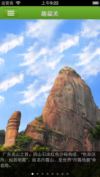 去韶關旅游不可錯過的必游的景點有哪些?除了韶關丹霞山旅游外,還有車八嶺國家級森林公園、乳源大峽谷、鴕鳥寨、瑤族自治村、南雄珠璣巷、韶關百丈崖峽谷漂流、韶關必背瑤寨、韶關大鑒禪寺、南嶺國家森林公園、韶關東湖坪民俗文化村、韶關風采樓、韶關芙蓉仙洞、韶關礦山公園、韶關金雞嶺、滿堂客家大圍、韶關恐龍博物館、韶關靈溪河漂流、樂昌龍王潭 、樂昌古佛巖、樂昌九峰、梅關古道等好玩的景點。【軟件特色】
