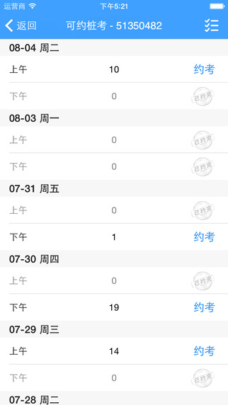 #.在約車tab,點(diǎn)擊右上角已約圖標(biāo),查看已約車次列表,下拉可刷新列表,點(diǎn)擊取消可取消已約車輛。