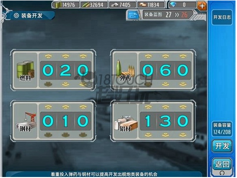 類似于建造,艦船上的裝備也是可以通過消耗資源開發(fā)出來的,不過前期并不推薦花太大力氣去開發(fā)裝備。中期開始,有了航母,飛機(jī)還是可以去開發(fā)一下的,至于主炮,不要強(qiáng)求了,將有限的圖紙用于開發(fā)飛機(jī)更合適。和建造一樣,不同的裝備也有不同的出貨時(shí)間。后面,我們還會(huì)為大家補(bǔ)上裝備開發(fā)公式。