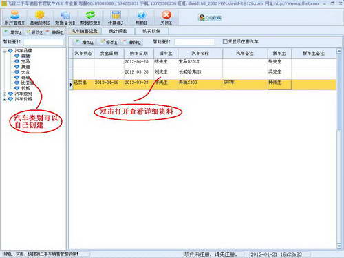 1、軟件可以按品牌、級(jí)別、價(jià)格來(lái)分類管理汽車資料。2、可以記錄舊車主、新車主、汽車費(fèi)用等資料、會(huì)自動(dòng)計(jì)算利潤(rùn)。