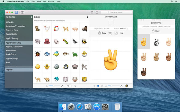 3、在表情的說。Ultra Character Map可以讓你獲得在OS X中使用的所有字符表情字符表情,只需拖動或復(fù)制到您的文檔。