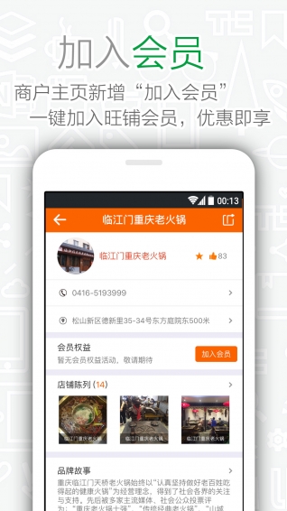 4、商戶主頁增加【加入會(huì)員】按鈕,目前加入會(huì)員有兩種方式:用戶手動(dòng)加入和連接商家路由器自動(dòng)加入。