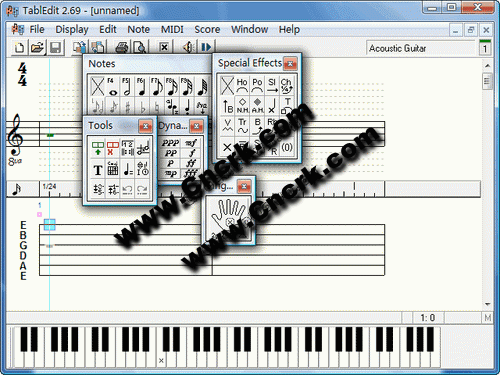曲譜編寫軟件,可以六線譜和五線譜互相對(duì)照的,可以一次完成一份五線譜和六線譜,也可以直接導(dǎo)入midi音樂文件。