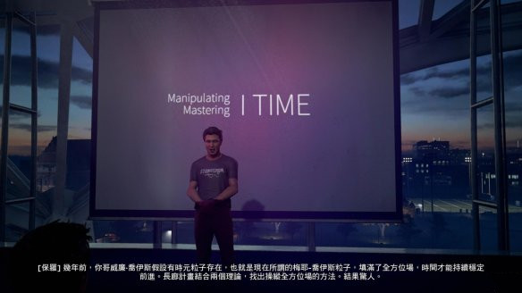 上了二樓,可以跟銀幕進行互動。在銀幕前,保羅大致介紹了一下他們的成果。利用黑洞讓時空扭曲,最終達到時空穿梭的目的。這就是長廊計劃,他們企圖征服時間。而且?guī)缀跻呀?jīng)成功了。