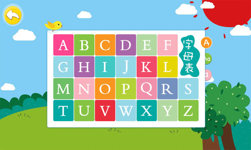 這是一款適宜于(0-3歲)小寶寶的啟蒙益智早教游戲,能教寶寶認(rèn)識(shí)26個(gè)英文字母。游戲包含字母氣球、小太陽(yáng)字母板、大森林字母表,還有吉祥物彈ABC英文歌曲。