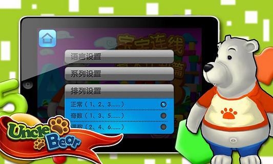 內(nèi)容提要:'熊大叔系列兒童游戲'專注于特色兒童教育,將給您帶來專業(yè)兒童教育理念。'熊大叔'《 寶寶連線ABC系列》是一款畫面卡通歡快、教育娛樂并重的兒童連線游戲,喜愛符號的小朋友們可以在游戲的過程中,認識意義豐富的符號,并學(xué)習(xí)到各種符號的中英文名字和發(fā)音。熊大叔寶寶連線讓孩子在游戲的同時體驗學(xué)習(xí)的樂趣,在學(xué)習(xí)的過程中快樂成長!游戲亮點:*3個類別(數(shù)字、英文字母、形狀),多達數(shù)十種符號,隨意切換,讓寶寶們暢游符號的領(lǐng)域*3種顯示(數(shù)字、大寫字母、小寫字母),滿足不同需求的寶寶體驗知識的樂趣*3類數(shù)字排列(正常、奇數(shù)、偶數(shù)),利于兒童對數(shù)字概念的更多了解*簡單易用的游戲流程,只要手指輕輕滑動,就能讓寶寶學(xué)習(xí)基本認知知識*多語言女生配音,更多的國家語言將在未來版本支持關(guān)于產(chǎn)品:《寶寶連線ABC系列》是'熊大叔兒童游戲'專門為寶寶設(shè)計的一款識物連線游戲,1歲以上的寶寶就可以開始使用。在游戲過程中,不僅提高了寶寶的動手能力、識物能力,培養(yǎng)了寶寶的發(fā)音水平,加深了寶寶對A-Z二十六個大小寫字母及1-30等數(shù)十個數(shù)字的記憶能力,同時還能讓寶寶在游戲中學(xué)習(xí)到其他語言的讀法,真正的做到寓教于樂。在寶寶的心目中,'熊大叔'就是一個手掌上的雙語幼兒園!小朋友們準備好游覽符號的領(lǐng)域了嗎?跟著熊大叔的腳步前進吧!無論是常見的字母數(shù)字、還是物品的形狀,熊大叔的世界里應(yīng)有盡有!