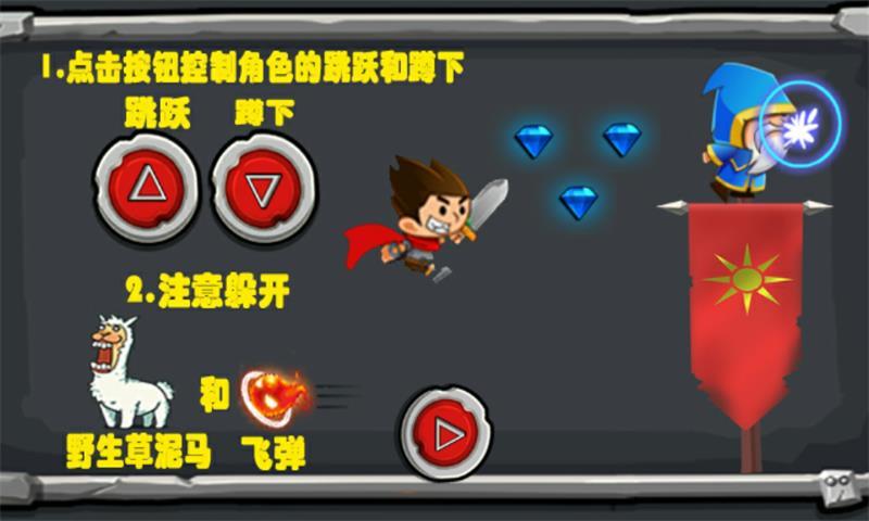寶石的追隨者是一款簡(jiǎn)單有趣的休閑益智類手機(jī)游戲。玩家只需要通過(guò)紅色按鈕控制追隨者的跳躍和蹲下,收集寶石,并且還要注意躲避野生草泥馬和飛彈,方能順利的完成每一關(guān)的關(guān)卡任務(wù)。