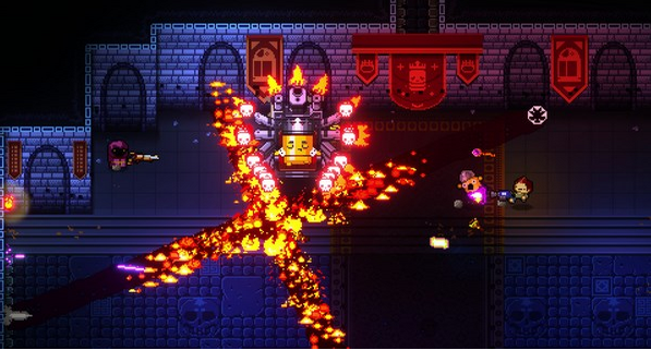 《挺進地牢》這款游戲中彈幕射擊是其主要的元素之一,而畫面中除了眼花繚亂的彈幕之外,依然有很多細節(jié)之處讓玩家們感到欣喜。每個小房間內都放置著很多書本,箱桶,桌椅等等,而這些物品無一例外統(tǒng)統(tǒng)都可以被摧毀,散落的書頁,灰燼在彈雨中飛舞,使整個畫面看上去十分充實。
