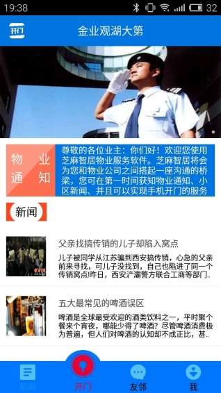 版本的新功能:優(yōu)化用戶界面;增加新聞?wù)故緮?shù)量;提升開鎖速度;增加物業(yè)安防追蹤;增加親密開門;增加物業(yè)通知追蹤;增加友鄰圈評論功能。