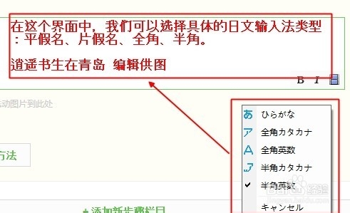 在下圖顯示的界面中,我們可以選擇具體的輸入日文的類型:片假名、平假名、半角、全角等。