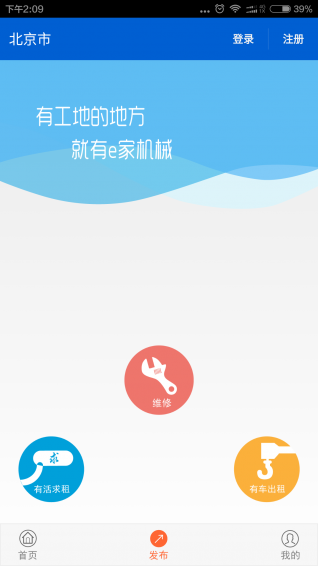 e家機(jī)械app以工程機(jī)械的機(jī)主為核心用戶,用直觀、便捷的方式、盡可能的給用戶提供更大的便利:當(dāng)機(jī)主在e家機(jī)械app中錄入了自己的車輛信息之后,可以把自己車輛一鍵發(fā)布出租;