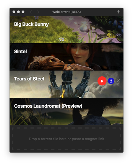 WebTorrent Mac版是Mac系統(tǒng)下的一款BT種子即時(shí)播放、下載軟件,有了WebTorrent Mac版你可以輕松在線觀看和下載BT種子。WebTorrent的界面非常簡(jiǎn)潔美觀,軟件自帶4個(gè)測(cè)試文件,都是1080P高清的視頻,當(dāng)然,你也可以自己講BT種子文件拖入程序中下載。【軟件特色】