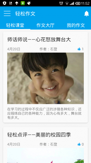 輕松作文app是一款學(xué)習(xí)教育平臺,作為學(xué)生,可以將自己的作文發(fā)表在輕松作文app上,讓老師和家長來點評,不僅可以幫助自己提高作文水平也可以在這里欣賞他人的作文內(nèi)容。