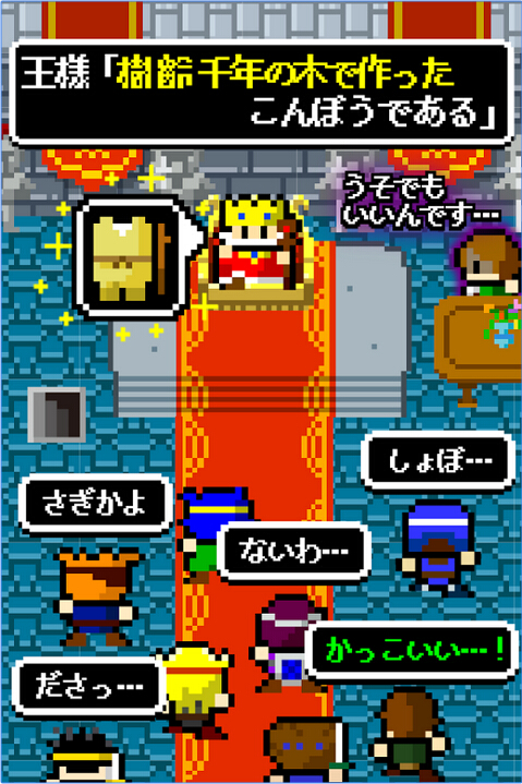 《腹黑的大王》是一款像素風格的角色扮演類游戲。王“這是上天所授予的奇跡的麻布!”大臣“有些太過扯淡了呢……說是專業(yè)工匠紡織的麻的話還算現(xiàn)實。”王“是、是呢……”因為給去冒險的勇者的“初期裝備”過于豪華,導致王和大臣失去了城市,于是大臣想出了“利用想成為勇者的村民”的腹黑計劃。更多搞笑劇情,等著你來體驗哦~