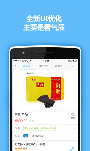 1、【一鍵定位】:精準(zhǔn)定位您身邊的藥店,提供便捷服務(wù).2、【藥品指南】:每款藥品均含功效及詳細(xì)說明書,可對(duì)癥找藥.