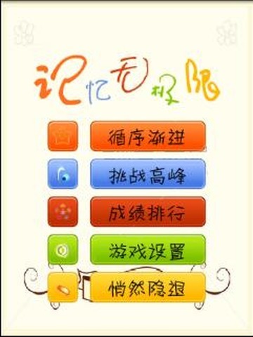 記憶無極限是一款采用了記憶匹配原理的消除游戲。這款獨特的全新益智游戲,需要您具備靈活的頭腦和準確的操作來完成。通過趣味性與耐玩性極高的游戲體驗,您不僅可以享受游戲帶來的緊張、刺激與快樂,同時也培養(yǎng)、提高了您的記憶力、觀察力、直覺判斷力、圖形分辨力、形象思維能力以及創(chuàng)造能力。華麗的游戲畫面,縹緲的音樂旋律是它的特色。