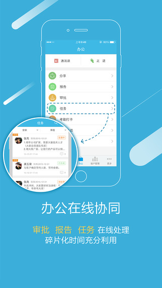 3.分享、審批、報(bào)告、報(bào)表、外勤簽到,移動(dòng)辦公更輕松。